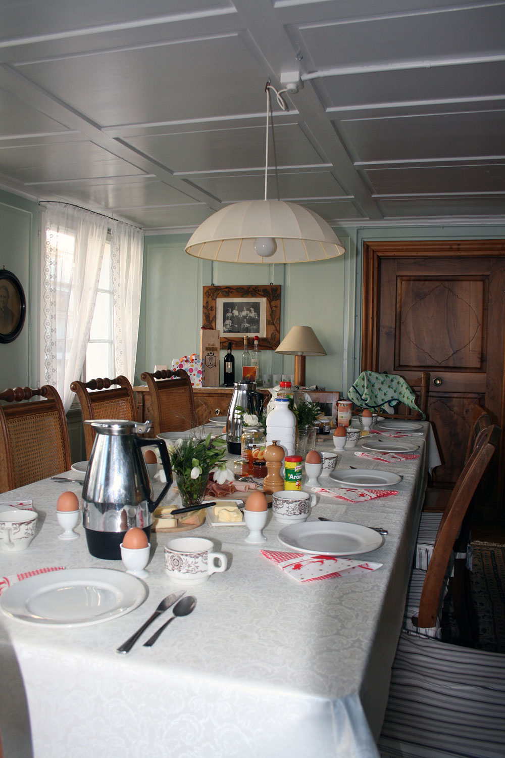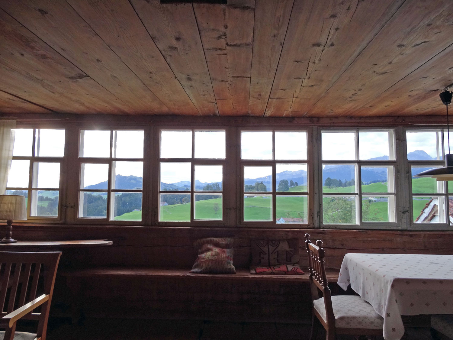 Die Sonnenseite mit dem kleinen Garten ist dem Säntis zugewandt. Die grosse Küche ist gemütlich und zweckmässig eingerichtet. Die Möblierung der Zimmer, die Ofenheizung und der tägliche Blick auf das Säntismassiv geben Ferien in der Palme die besondere Atmosphäre.